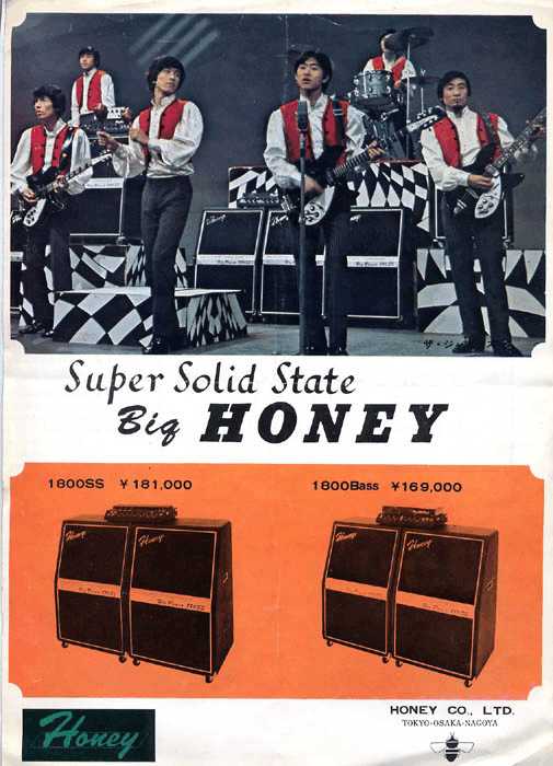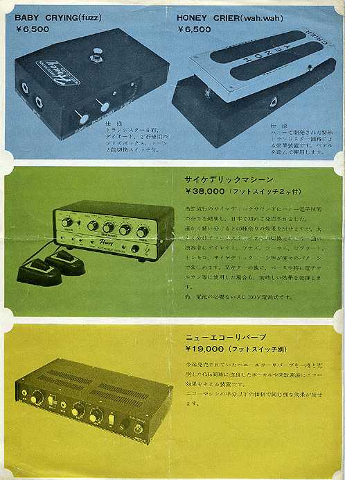 60年代後期ハニー、主にリッケンバッカーとグレッジの コピーモデルを生産していたが短命。残念ながら ギターの写真はありませんでした。 右側のサイケデリックマシーンというのが当時らしい どんな音がしたんでしょう?